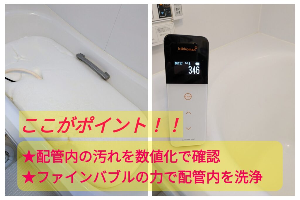 クリーニング前後で、配管内の汚れを数値化して確認します。